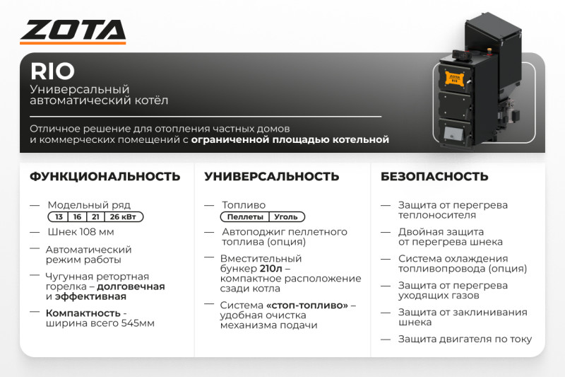 ZOTA «Rio» универсальное компактное решение для узких котельных - ширина всего 545 мм.